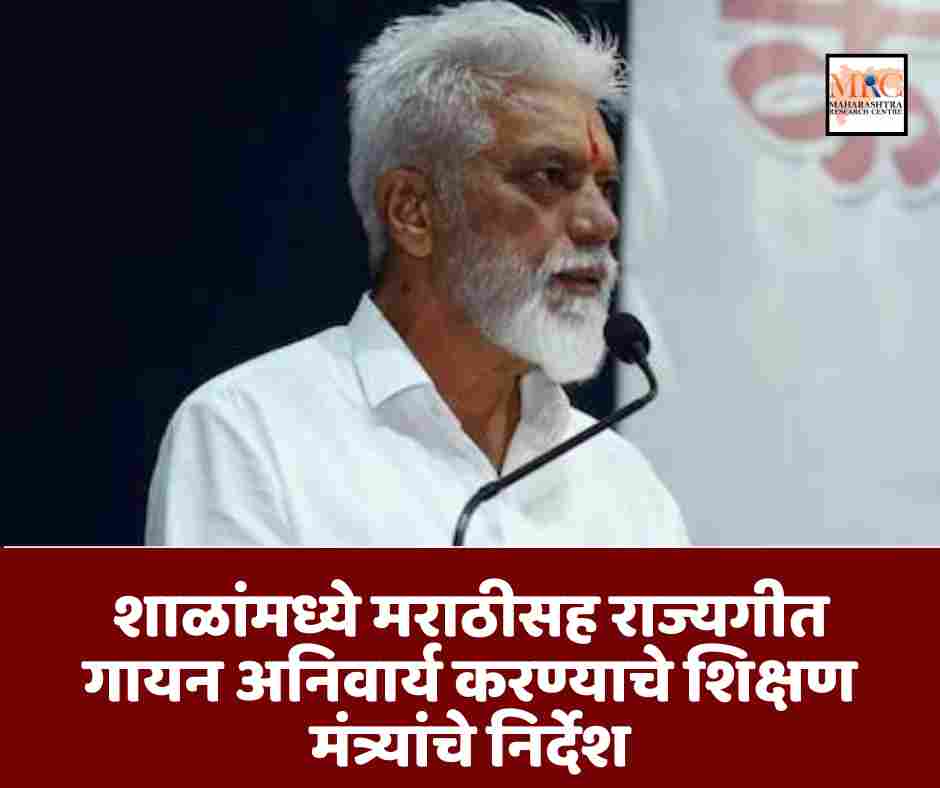 मुंबई – राज्यातील सर्व शिक्षण मंडळांच्या शाळांमध्ये मराठी भाषेचे अध्ययन आणि अध्यापन अनिवार्य असतानाच, आता राज्यगीत गायनही अनिवार्य करण्यात यावे, अशा सूचना शालेय शिक्षण मंत्री दादा भुसे यांनी दिल्या आहेत. मंत्रालयात झालेल्या राज्यातील विविध शिक्षण मंडळांच्या समन्वयक, प्राचार्य आणि शिक्षण विभागाच्या अधिकाऱ्यांच्या सहविचार बैठकीत ते बोलत होते.