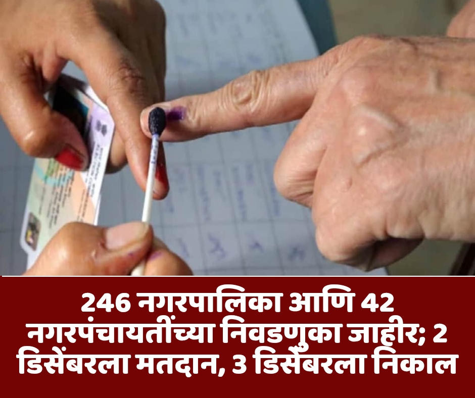 246 नगरपालिका आणि 42 नगरपंचायतींच्या निवडणुका जाहीर; 2 डिसेंबरला मतदान, 3 डिसेंबरला निकाल