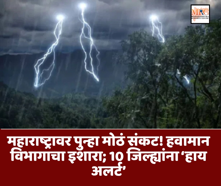 राज्यात नुकत्याच ओसरलेल्या पावसानंतर नागरिकांना दिलासा मिळणार असं वाटत असतानाच पुन्हा एकदा भारतीय हवामान विभागाने महाराष्ट्रासाठी मोठा इशारा दिला आहे. बंगालच्या उपसागरात निर्माण झालेल्या कमी दाबाच्या पट्ट्यामुळे राज्यात पुन्हा एकदा पावसाची शक्यता वाढली आहे. पुढील तीन ते चार दिवस महाराष्ट्रातील दहा जिल्ह्यांना ‘हाय अलर्ट’ घोषित करण्यात आला आहे.